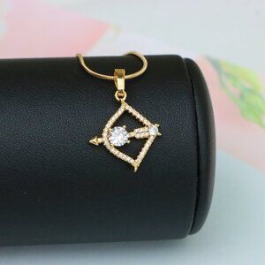 This zodiac-inspired pendant showcases the Sagittarius symbol in a refined design with a shimmering arrow motif.