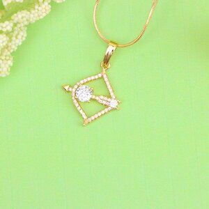 This zodiac-inspired pendant showcases the Sagittarius symbol in a refined design with a shimmering arrow motif.