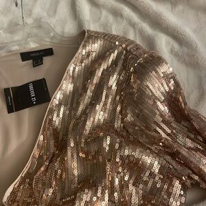 Shimmer in style with this rose gold sequin cardigan. Perfect for adding a touch of glamour to your collection.