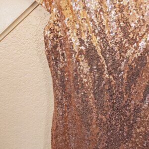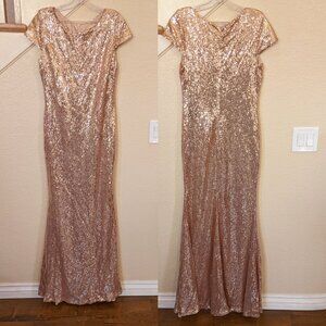 Rose Gold Sequin Short Sleeve Formal Wedding Evening Dress 12