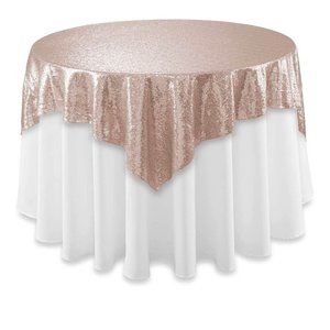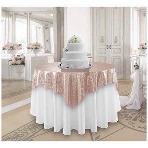 Rose Gold Sequin Tablecloth Pink Gold Linen Covering Square Overlay 50x50 inch ~