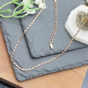 Elegant and refined rose gold necklace with a slim link pattern and extender, perfect for adjustable styling and layering.