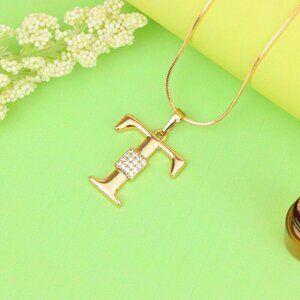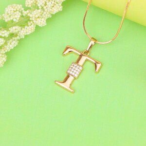 "Rose Gold T Letter Pendant with Sparkling CZ Stylish Charm, XPPT1431