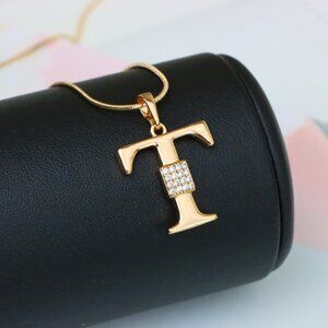 Chic and meaningful T initial pendant, ideal for everyday elegance.
