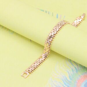 Elegant and bold, this rose gold bracelet features a unique design with textured links and fine ball detailing along the edges. Perfect to enhance your everyday or occasion look.