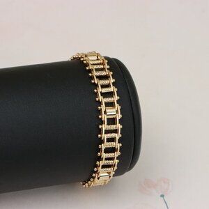 Elegant rose gold bracelet crafted with high quality brass and luxurious gold plating, designed with a sophisticated ladder-link texture for a bold statement.