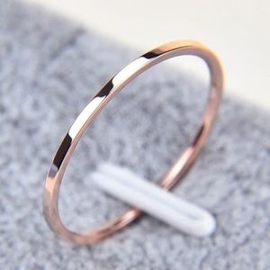 Brand new in original packaging. A classic beauty: 1.5 MM titanium steel rose gold color polished wedding ring. Features a thin band, great for layering. A minimalist lovers dream! Lightweight, everyday class & elegance.