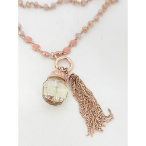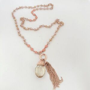Rose Gold Tone Beaded Tassel Pendant Necklace