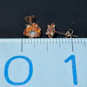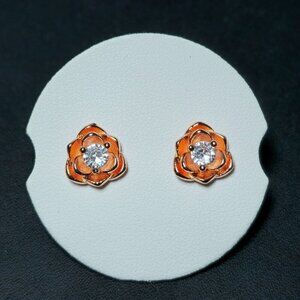 Rose Gold Tone Flower Stud Earrings With Cubic Zirconia Center (NWOT)
