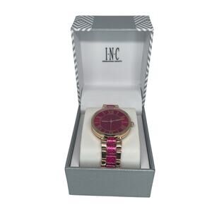 Pink glitter decorates the classic rose gold-tone look of this I.N.C. International Concepts watch, making it a bold choice.