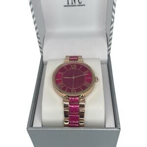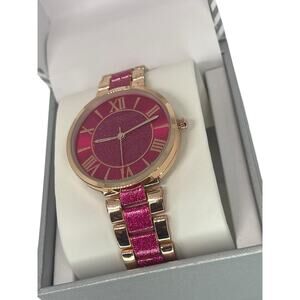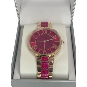 Gold Tone Pink Glitter Watch Bracelet Stunning Elegant Glitzy Shiny Fashion NWT $50 MSRP
