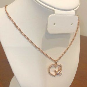 -This lovely pendant and chain are rose gold tone, and it features a heart with a dove. Nice and delicate.