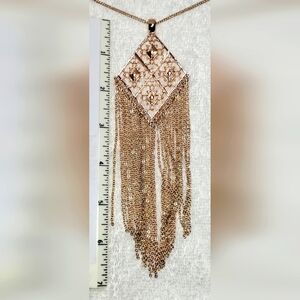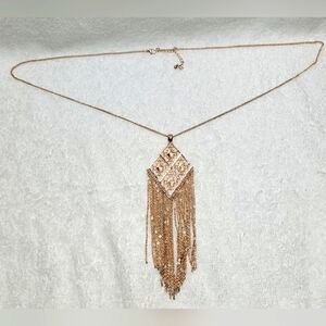 Rose Gold Tone Sliding Diamond Shaped Tassled Necklace