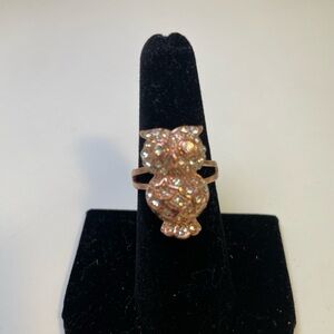Rose Gold Tone and Rhinestone Owl Ring size 6.5