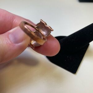 This elegant rose gold colored owl ring is adorned with sparkling rhinestone accents, perfect for adding a whimsical touch to any outfit. Size 6.5. Excellent preowned condition.