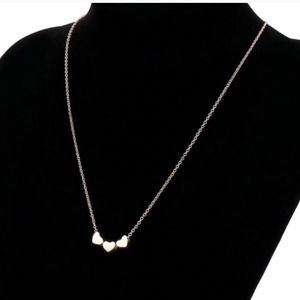Beautiful, dainty & romantic chic style necklace features triple hearts, resting on a gold link chain.