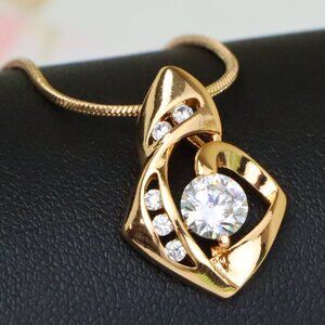 "Rose Gold Twist Pendant with Central Round Stone and Side Accents, XPPT1509