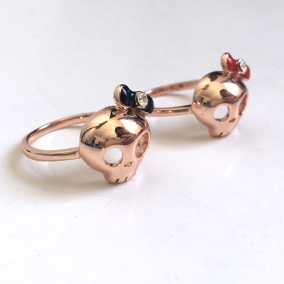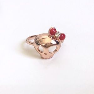 If a skull could be super cute, this is it! Finish is rose gold plated with enamel & crystal accents. Available with black or red enamel bow. Ring comes in sizes 6-8. 🌟Bundle with other items to get 20% Off and save on shipping!🌟