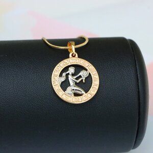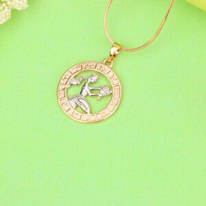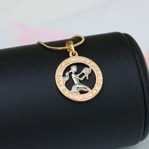 "Rose Gold Virgo Zodiac Pendant with Elegant Symbol and Fine Detail, XPPT1450