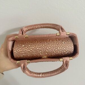 Never been used Zara pink/rose gold rhinestoned pocketbook (still with tissue stuffing!). This features rhinestones on the front, back, and handles as well as four gold feet underneath the bag to protect it. It also comes with a crossbody strap! Best feature is the snapping cover over the top to secure your belongings inside. Large enough for phone, wallet, keys, lip gloss, sunglasses.. too small for water bottle. Great for bachelorette, concerts, bars, date night, company event, etc!
