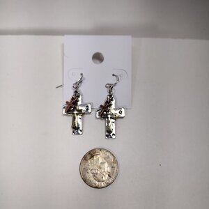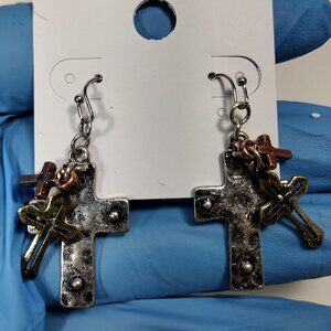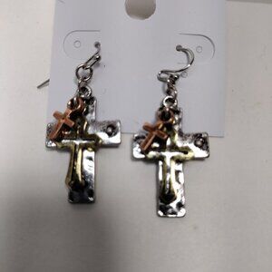 Beautiful design of Rose Gold-tone. Gold-tone and Silver tone Triple Crosses Teardrop Earrings New with tag