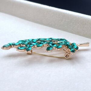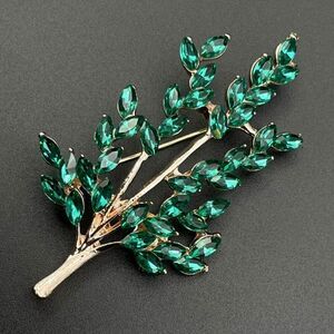 Rose Gold with Emerald Green Crystal Tree Branch with Leaves Pin Back Brooch
