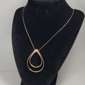 Rose Gold-Tone Teardrop Pendant Necklace – Double Hoop Design, Elegant - Women