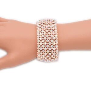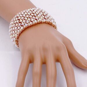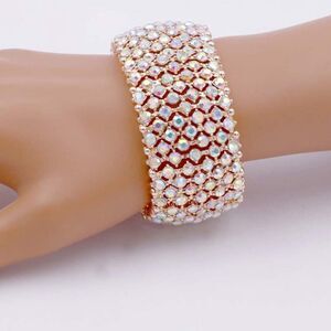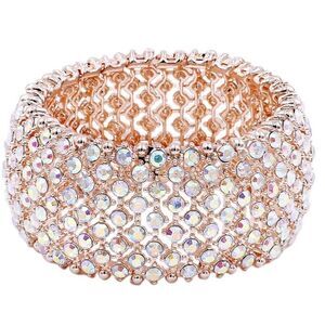 Rose Gold and Iridescent AB Austrian Crystal Tennis Stretchable Bracelet Bangle