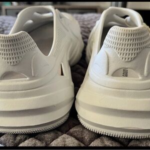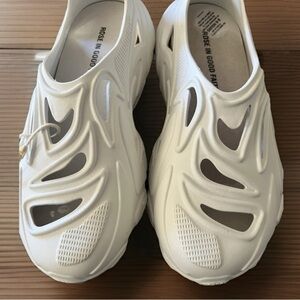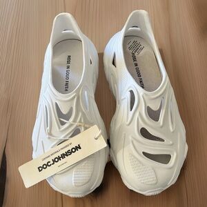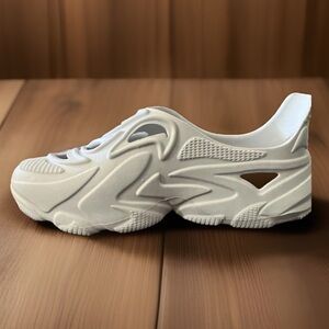The Rose In Good Faith Shoes in men's size 9 are a stylish and comfortable option for casual wear. These slip-on shoes feature a solid white color with modern cut-out accents, a round toe shape, and a breathable foam lining. The foam upper and insole provide added comfort, while the foam outsole ensures a soft and flexible feel. Ideal for everyday use, these shoes combine fashion and functionality for a contemporary look.