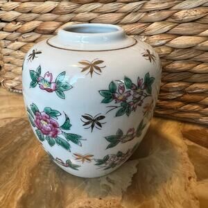 A 4 inch tall made in Japan vase showing pink flowers throughout. In good condition no chips or cracks. Please refer to all photos for current condition and measurements.