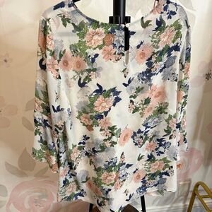 Rose Olive 1X Ivory Floral Boho Flutter Butterfly Sleeves Womens