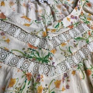 Rose + Olive 1X Top Lace Yoke Detail Boho Peasant Pullover Blouse