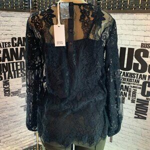 ITEM: Rose + Olive L Black Lace Lined Scallop Hem Long Sleeve Top