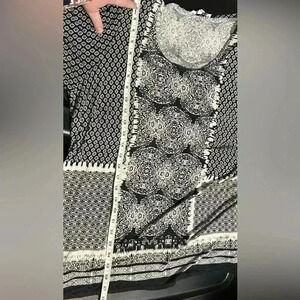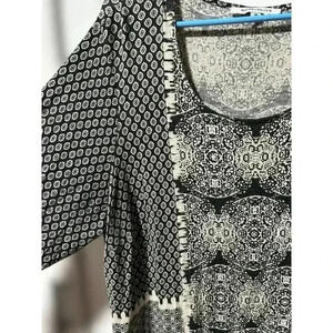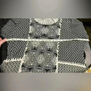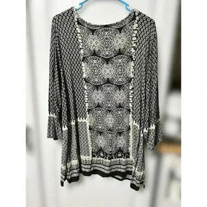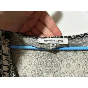Rose & Olive Black & White Round‎ Neck Stretch Pullover 3/4 Sleeve, Size 2X