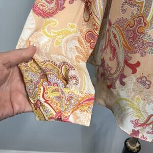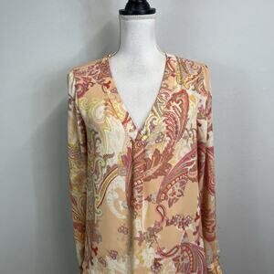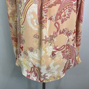 Rose + Olive Blouse Tunic size Small Pink Yellow Paisley Sheer Casual Career