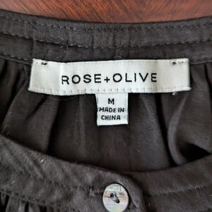 Rose + Olive Buttondown Long Sleeve Bohemian Blouse Size Medium in Black