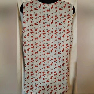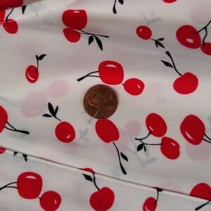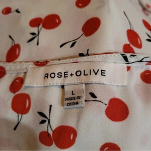 Rose & Olive Cherry Patterned V-Neck Blouse - White and Red size Large