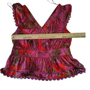 Rose & Olive Colorful Floral Sleeveless Lace and Ruffles Petalum Blouse Size 6
