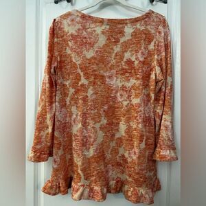 Rose & Olive Floral 3/4 Sleeve Sweater Ruffle Shirt Large