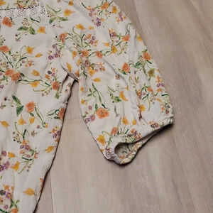 🛍Rose + Olive Floral Cinched Sleeve White Womens Blouse Size 1X