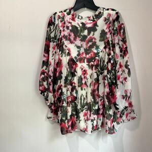 Rose + Olive Floral Sheer Blouse Plus Size 1X Boho Romantic Peasant Top Spring