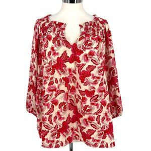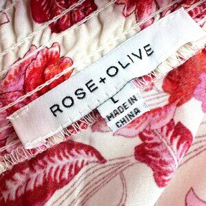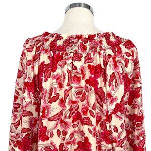 Rose + Olive Floral Smocked Puff Sleeve Blouse Red Pink Ivory Size Large