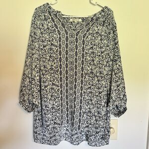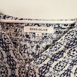 Rose Olive Floral Tunic Top Woman Button Front 3/4 Sleeve Ruched Casual Flowy 1X