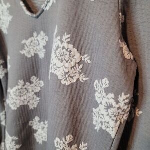 Rose + Olive Gray Floral 3/4 Sleeve Textured Top Size Small