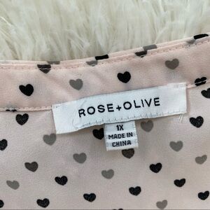 Rose + Olive Heart Patterned Sheer Blouse | Pink & Black | Size 1x