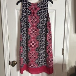 Great condition Rose & Olive sleeveless print dress in pink, navy and white. Ladies Size 8.