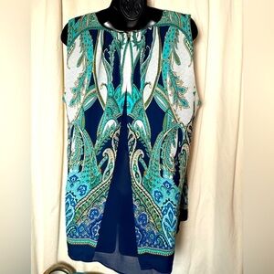Rose & Olive Layered Split Back Paisley Sleeveless Dressy Blouse Womens Sz 1X