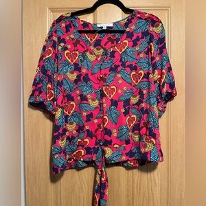 Rose & Olive Multicolor Tropical Pattern Blouse