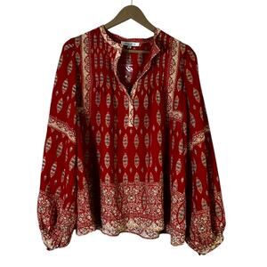 Rose + Olive Paisley Print Peasant Top Womens L Red Hippie Boho Cottagecore