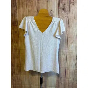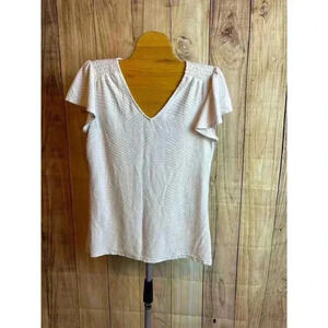 Rose + Olive Ruffle Sleeve Textured V-Neck Blouse Top Blush Pink Women's Size S